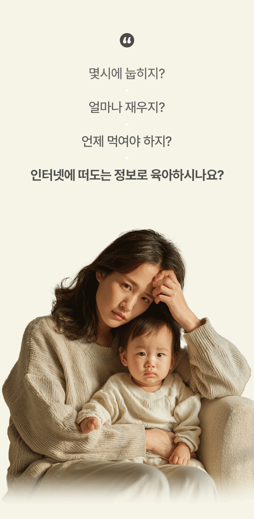 세상엔 수많은 정보가 넘쳐나고 이런 상황에서 우리는 혼란을 겪게 됩니다. 어떤 것이 옳고 그른 것인지, 나와 우리 아기에게 맞는 방법은 무엇인지에 대한 고민을 매일 하고 계실 것 같아요.