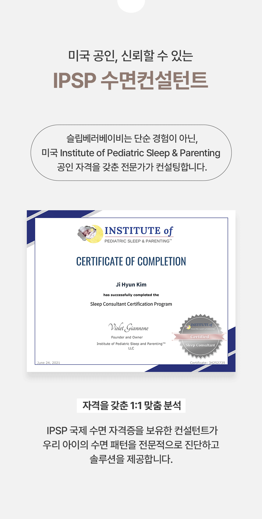 과학적 수면 교육과 IPSP 국제 인증 컨설턴트의 전문 지식을 바탕으로